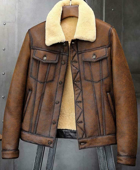 Spot Brown Thicken Unhooded Men's Leather Jacket